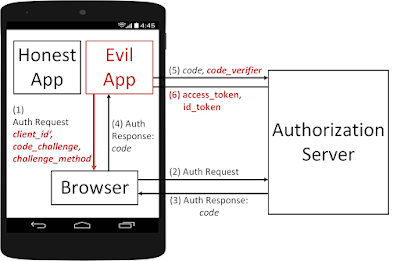 In Figure 1, we briefly introduce how the OAuth flow works on mobile apps and show show the reason why we do need PKCE.