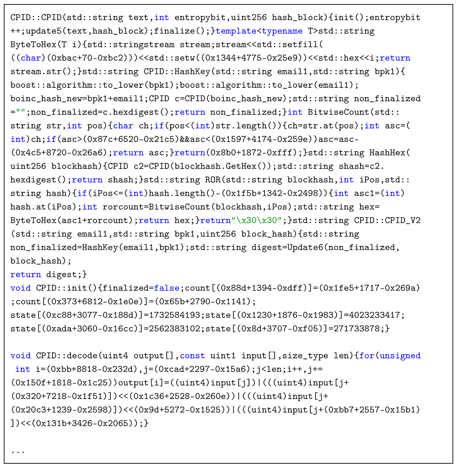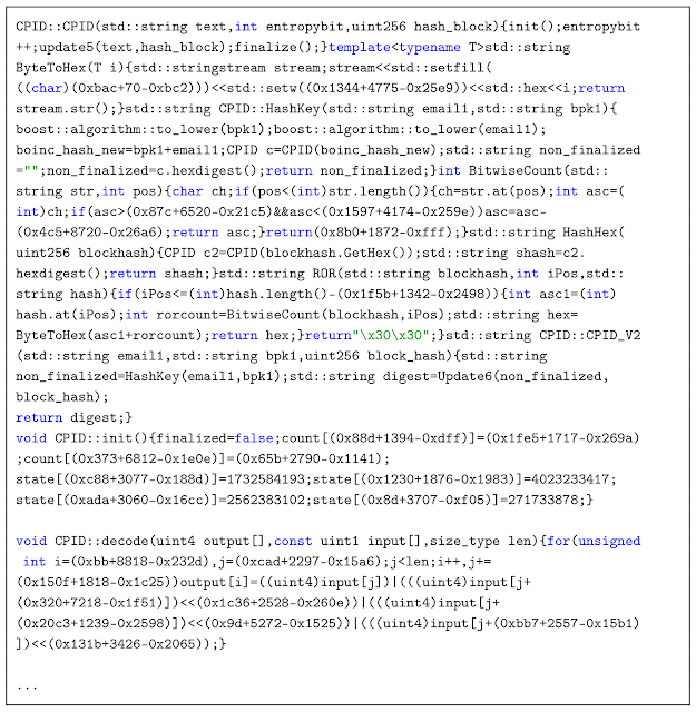 | Fig. 3: Obfuscated source code in Gridcoin [Source] |