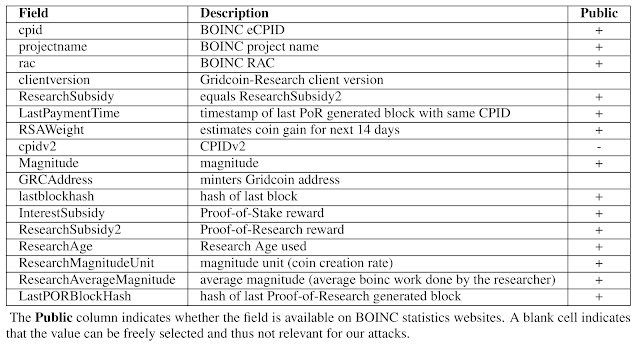 A more detailed description of Gridcoin and the attacks will be presented at WOOT'17, the paper is available here.