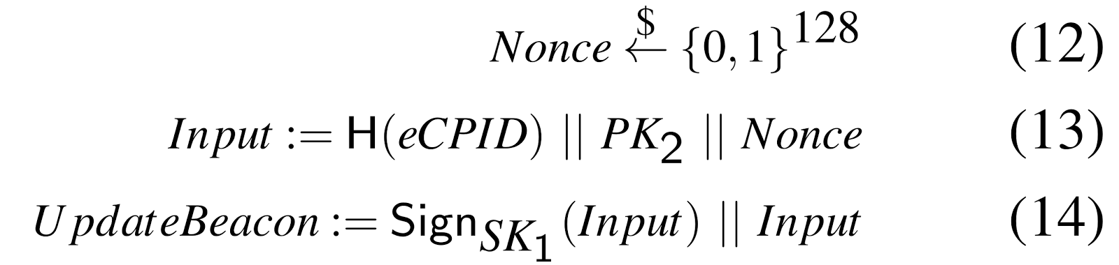 For verification purposes nodes fetch the corresponding latest public key from one of the Superblocks. Furthermore, this Beacon structure allows a user to replace his previous public key associated with his eCPID. This is realized by submitting a new Beacon with a new public key PK_2, signed with his old secret key.